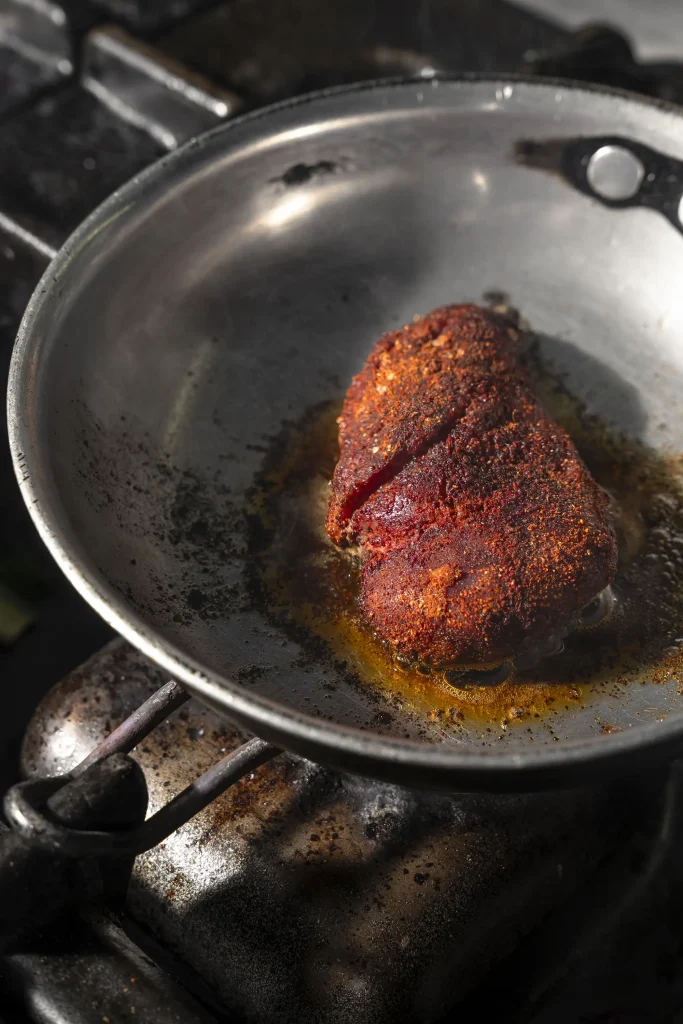 In una padella di ferro ben calda, adagiate i petti dal lato della pelle e cuoceteli per circa 10 minuti, finché risulterà croccante. Girateli, proseguendo la cottura per 1 minuto sul lato della carne.